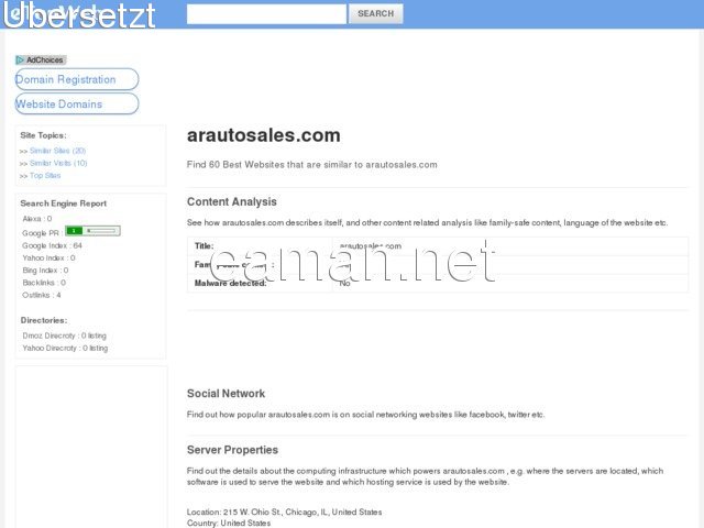 arautosales.com - Dies ist ein Wert, der Bericht über arautosales.com Geben Sie einen Wert nach oben von $2768 USD von unserem system, Umfassend Referenzdaten Include:Alexa-Rank, Google-Ranking, Suchmaschinen-und Social-Media.